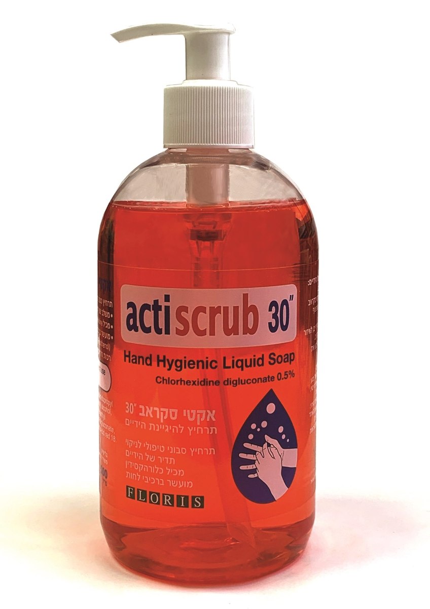 פלוריש אקטי סקראב 30 תרחיץ להיגיינת הידיים. תרחיץ סבוני טיפולי להיגיינת הידיים, לניקוי תדיר.