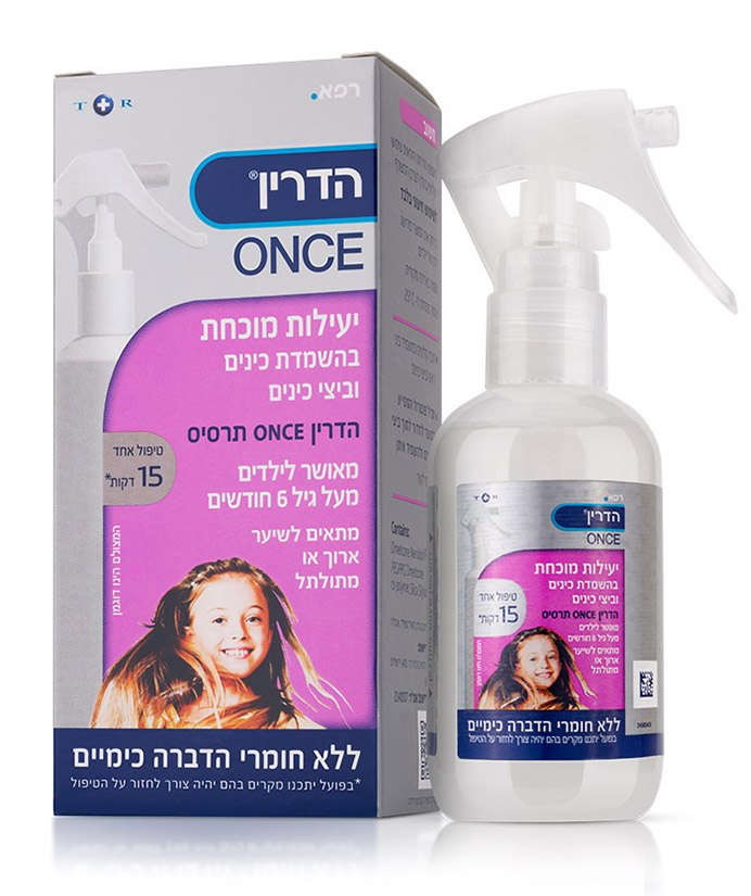 להדרין ONCE ספריי יעילות מדעית מוכחת ופרופיל בטיחות גבוה. טיפול אחד* של 15 דקות בהדרין ONCE משמיד את הכינים וגם את ביצי הכינים, בדרך כלל ללא צורך לחזור על הטיפול שבוע לאחר מכן. זאת בניגוד למוצרים אחרים, בהם יש צורך לחזור על הטיפול לאחר 7-10 ימים.