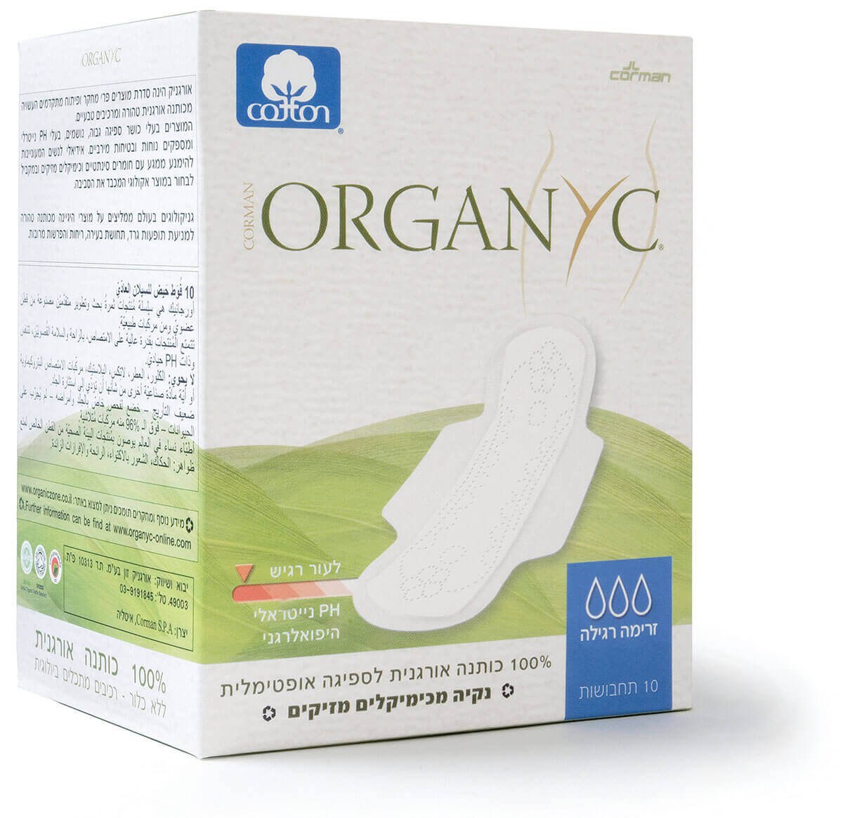 תחבושת אורגניק לספיגה רגילה מכותנה אורגנית ללא כימיקלים מזיקים 10 יחידות