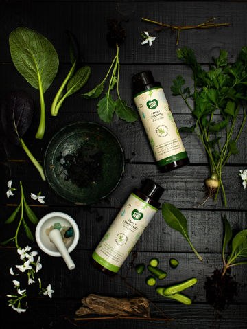 שמפו טבעי מתמציות אורגניות: מלפפון, פטרוזיליה ותרד.